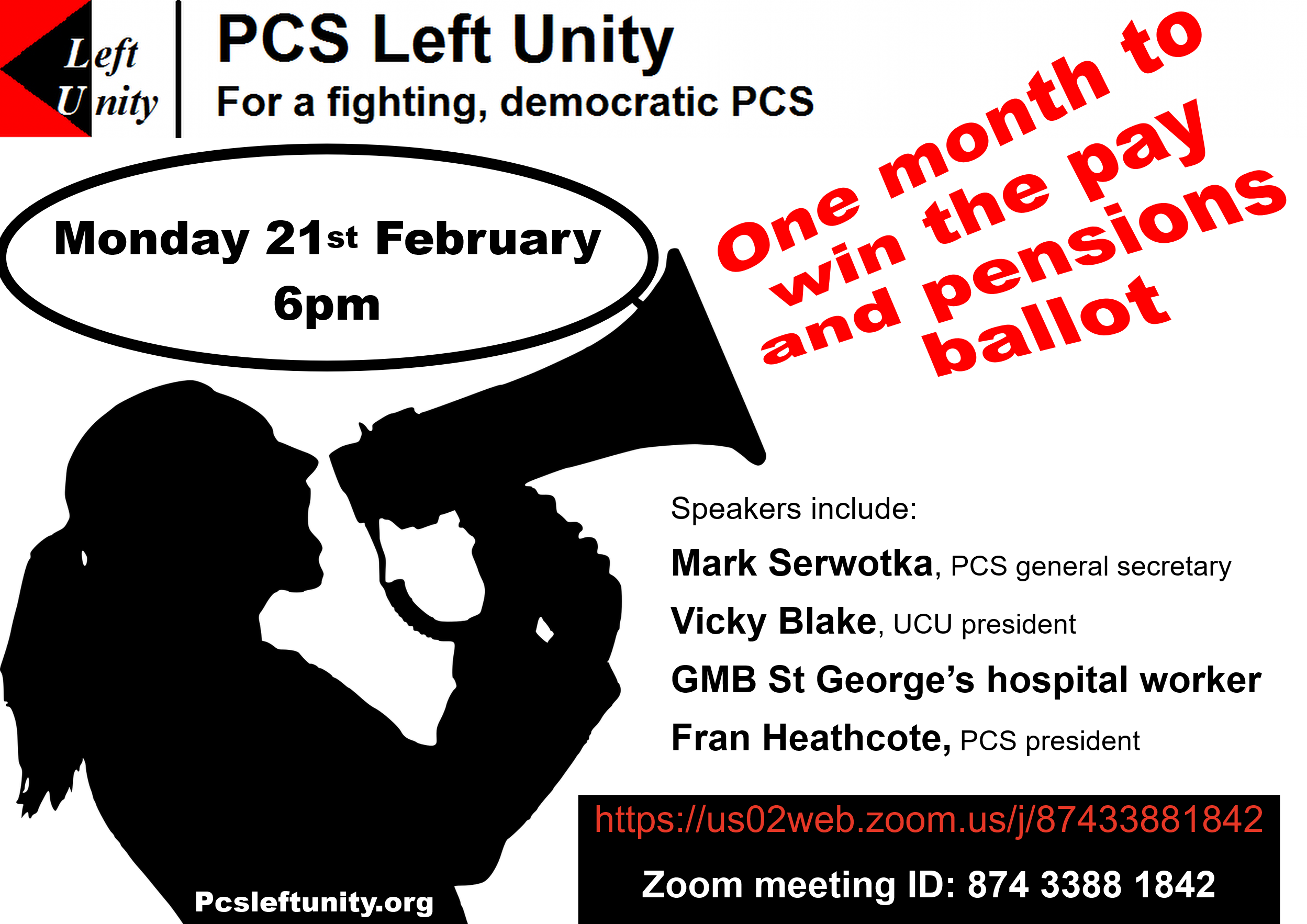 On Monday 21st February, with one month left of the pay and pensions ballot, PCS Left Unity will be hosting a rally to help get the vote out.