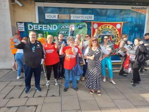 PCS Left Unity members from the DWP GEC were proud to show solidarity with RMT strikers in Leeds this morning.