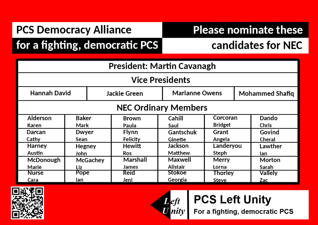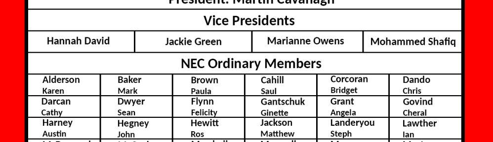 Please nominate Democracy Alliance candidates for the NEC Posted on January 16, 2026 by Admin Please propose the Democracy Alliance NEC slate at your branch AGM. Share this: Share on X (Opens in new window) X Share on Facebook (Opens in new window) Facebook Email a link to a friend (Opens in new window) Email Like Loading... Related