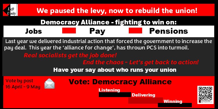 Click here to download as a printable leaflet -> https://pcsleftunity.org/wp-content/uploads/2025/04/1-national-leaflet.pdf